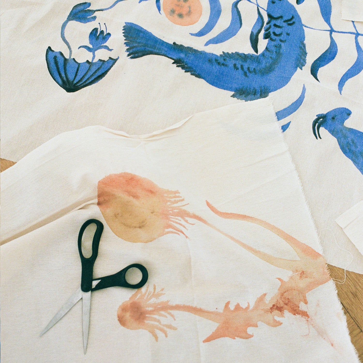 I have these oscilla hanging around paintings with similar meanings: protective, imaginary flowers and creatures with the sole purpose of keeping the little one safe. All of nature is there to caress them and make them feel loved.