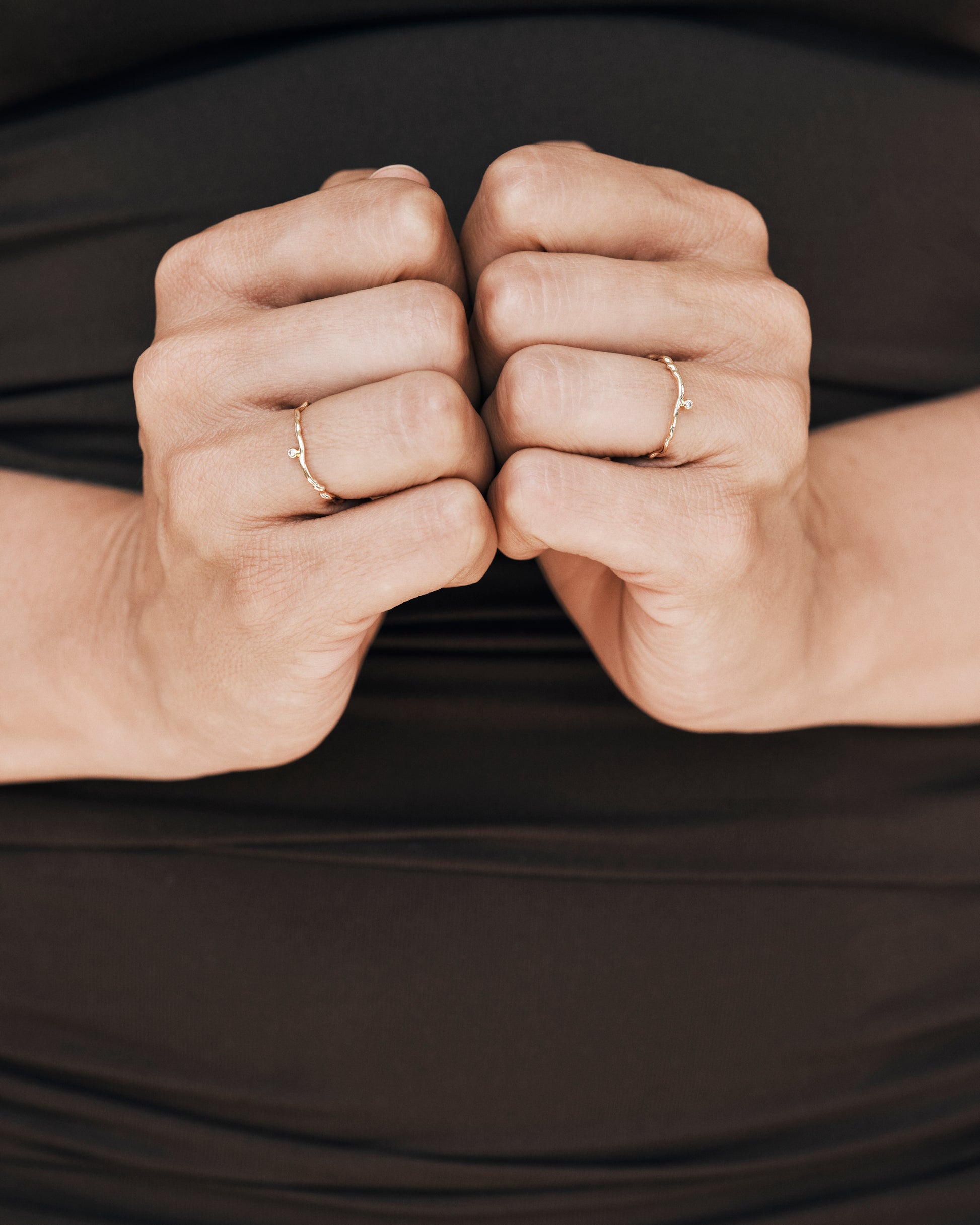 The Bea Diamond ring is inspired by branches and their crooked shapes. The diamond can resemble a small sprout.