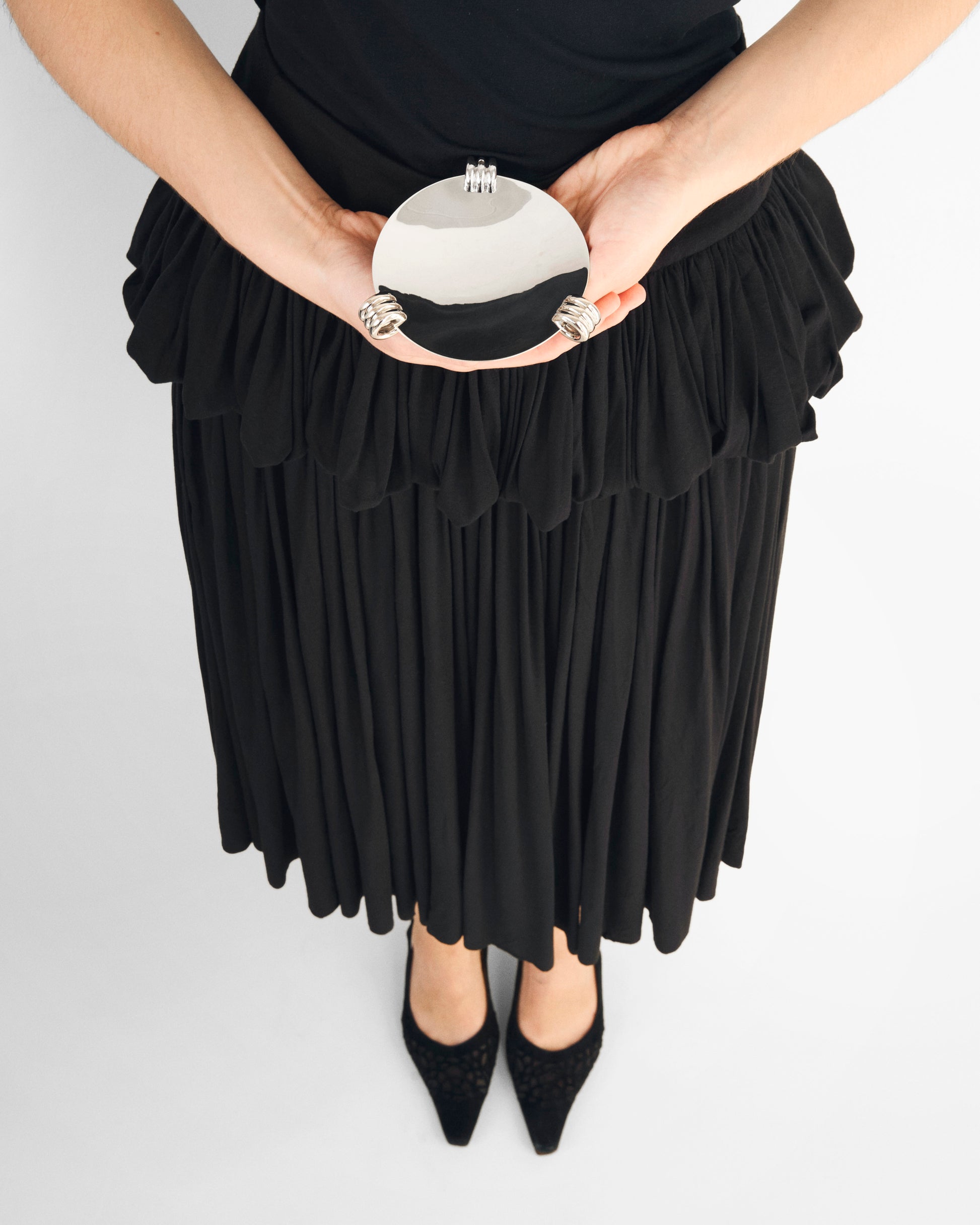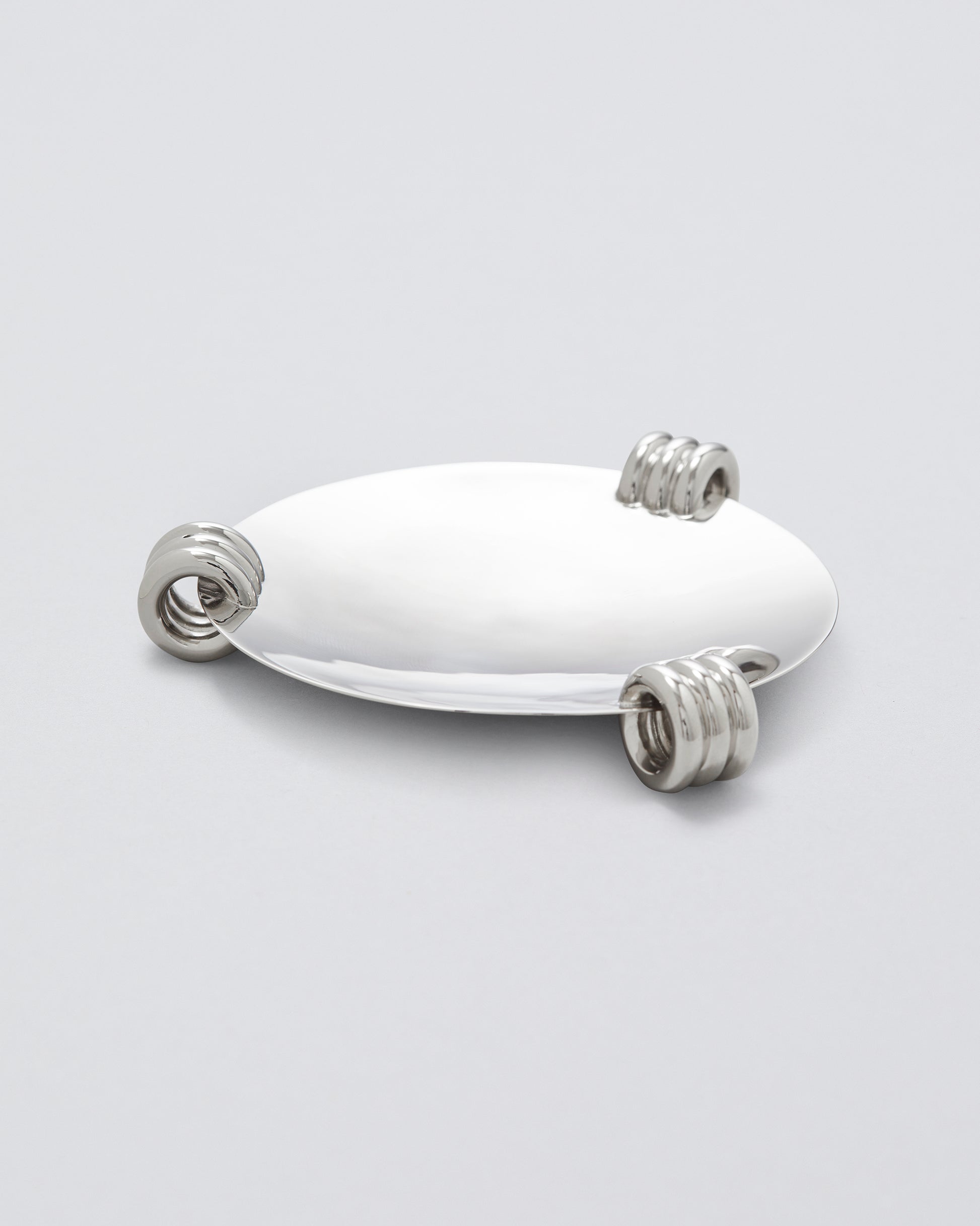 Echo Bowl is crafted in brass with a platinum finish, a small vessel with multiple uses. - For incense, salt, sugar, soap, palo santo etc. The bowl rests on three legs - a form shaped through repetition. Merging function with form.