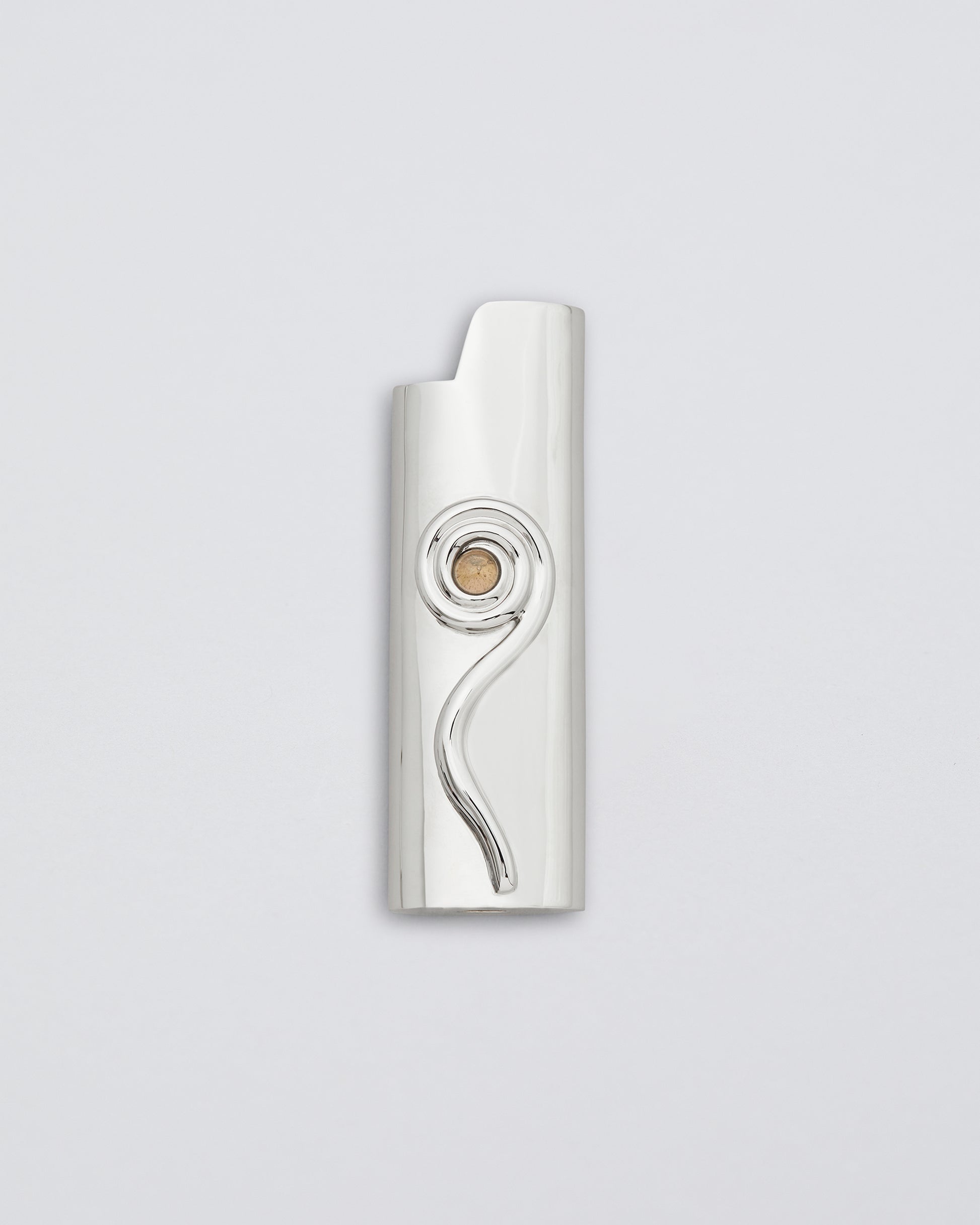 Endless Lighter Case is crafted in brass with a platinum finish and features a Smoky Quartz stone. A continuous form shaped in measured motion.