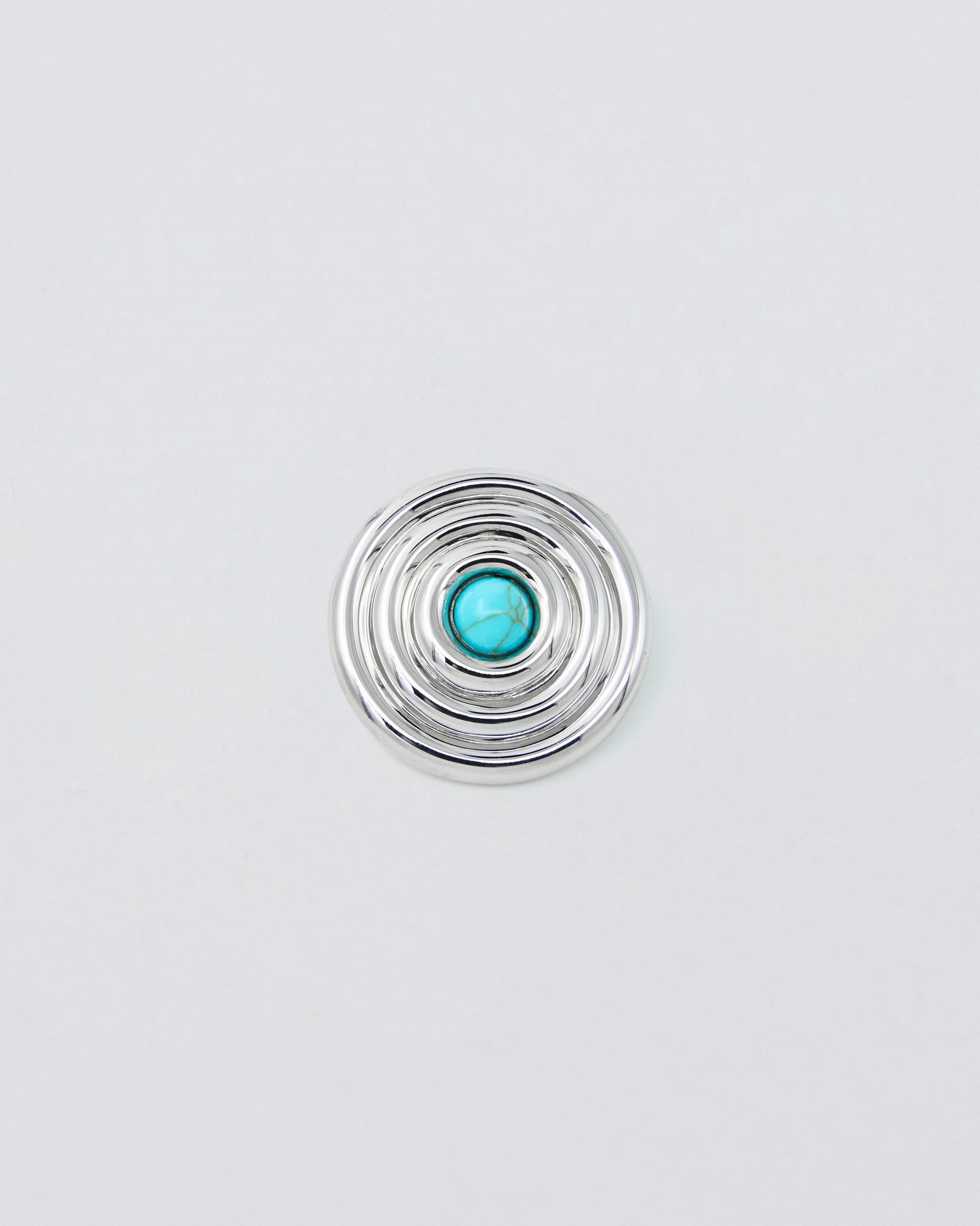 The Howlite Earrings are structured with circular layers surrounding the Howlite stone, offering clarity in shape and presence in detail. Designed as classic studs with a post back closure