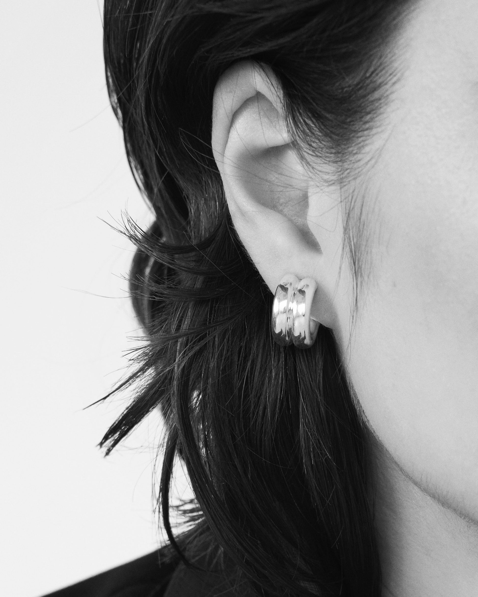 Imprint Hoop is crafted in 925 sterling silver with a 14k gold-plated finish. Defined by its sculptural double curve, it reflects the brand’s signature balance of simplicity and substance. A simple, elegant earring made for everyday wear.