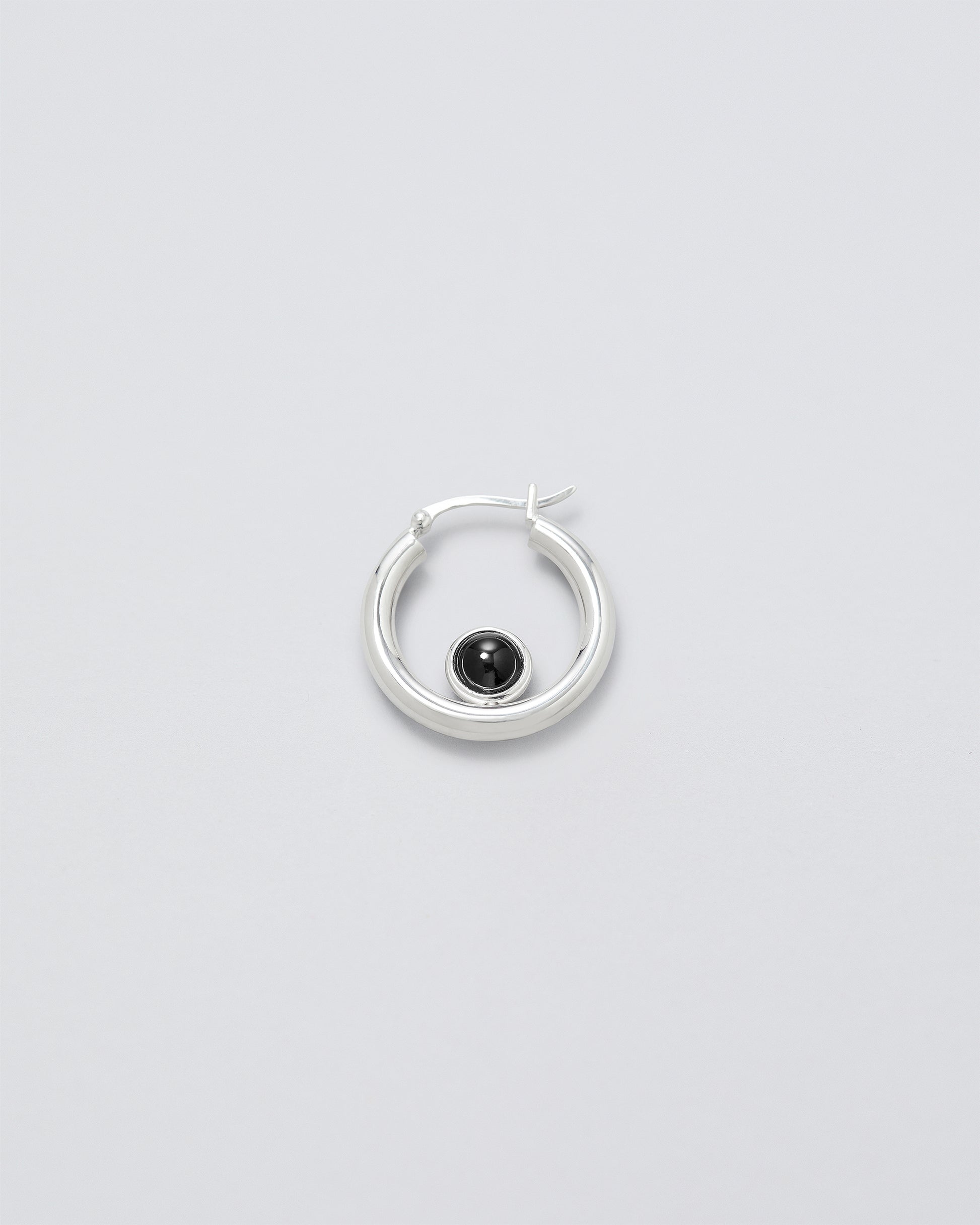 Onyx Hoop is crafted in 925 sterling silver. Its refined circular form is centered by a Black Onyx, known to symbolize grounding and protection. A timeless hoop made for everyday wear.