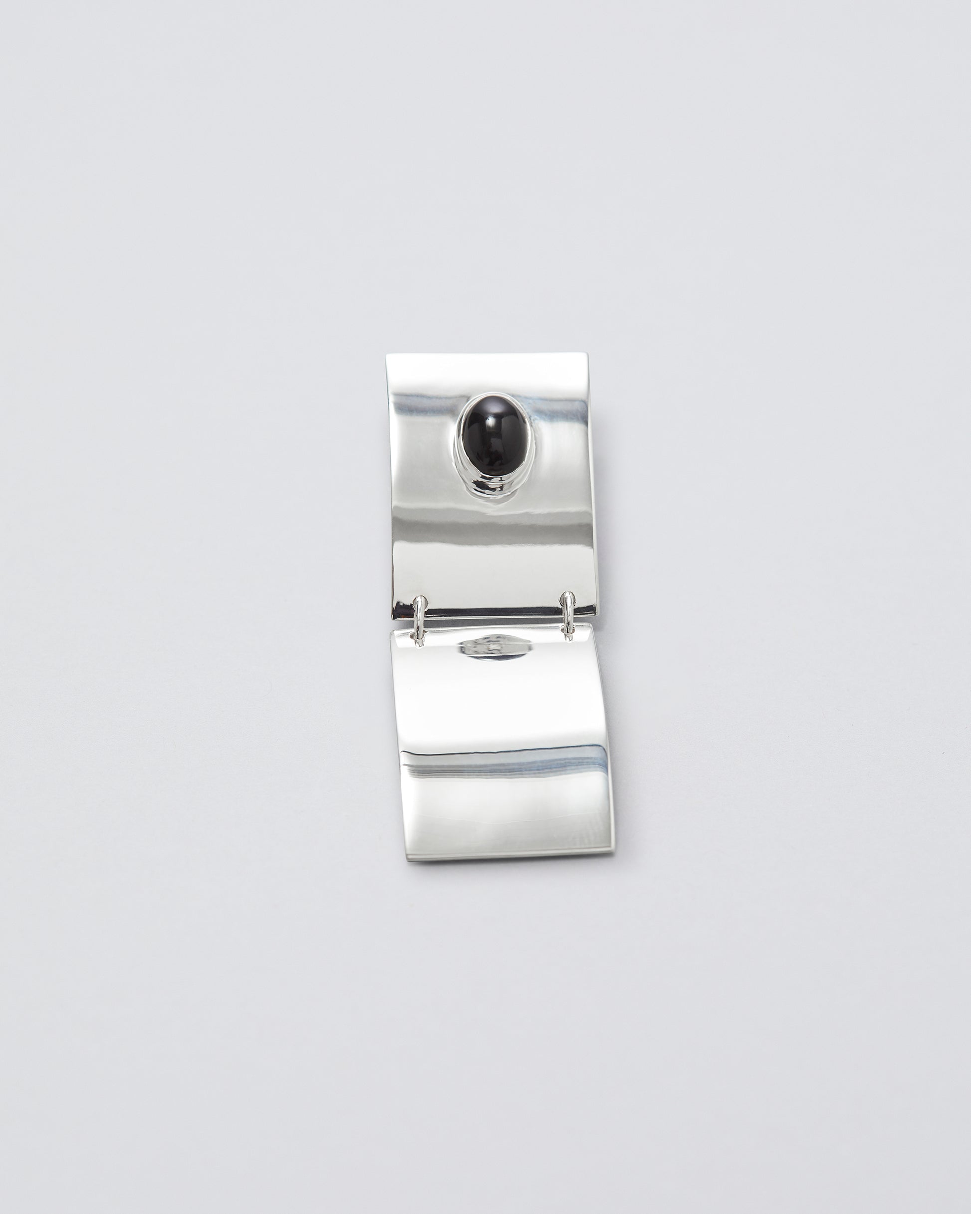 Reframe Earring is crafted in 925 sterling silver with a 14k gold-plated finish. Its clean form creates a sense of balance and structure, contrasted by the Black Onyx. The two surfaces are connected with jump rings, allowing the earring a sense of movement.