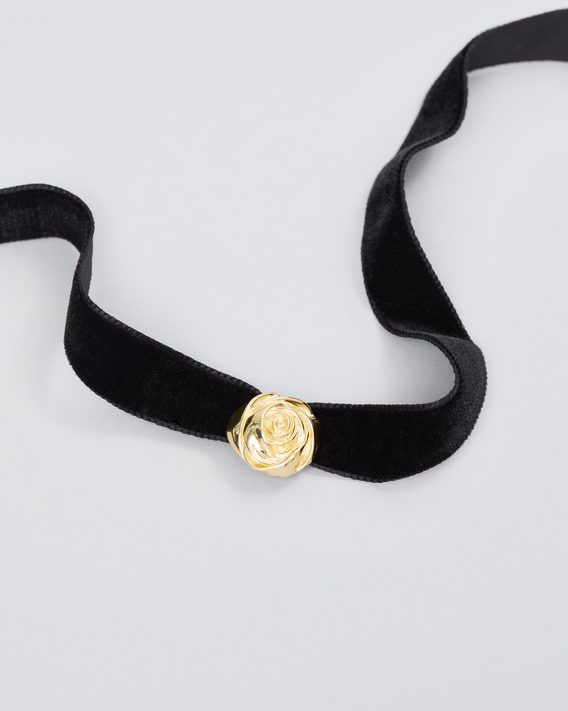 This choker has our largest rose centered on a wide velour band. The band can wrap around your neck, wrist, ankle, or waist.